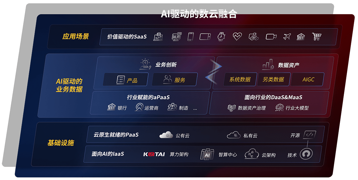 以尊龙鲲泰全国产化计算产品帮助金融行业客户构筑数字底座;以丰富的AI和数云产品及方案,,,,保障数据安全,,,,挖掘数据价值,,提升服务品质